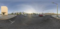 A street corner in Lisbon, Portugal, showcasing modern architecture and urban design. Clear skies provide a beautiful backdrop to the buildings and empty parking lot. This metropolitan area is known for its landmarks and real estate properties.