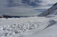 A beautiful mountain landscape in Europe, covered in a blanket of snow. The snow-covered slope leads to an icy terrain and a polar ice cap in the distance. A serene garden under a clear sky adds to the picturesque scene.