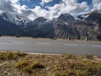 This is an image of a road winding through the highlands of Austria. The landscape features mountains, grassy terrain, and a peaceful lake. The clear sky above creates a vibrant backdrop for the scenery, while clouds add depth and drama. The road surface is asphalt, providing a smooth and steady path. Lush vegetation, including trees and banks, line the road, enhancing the natural beauty of the area. This photo captures the essence of the Austrian countryside, showcasing its pristine nature and breathtaking views.