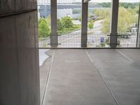 This is an image of a modern architecture building in Berlin, Germany. The photograph showcases the urban design and open space concept with a view straight down the road. The concrete street and parking garage contribute to the contemporary feel of the city. The photo captures the essence of urban life in Europe. The empty road and platform create a sense of solitude and tranquility within the bustling city. This image represents the integration of modern architecture and urban design in Berlin, Germany.