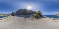 this is an 360 view from a street and a river looking down at the water