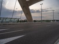 A modern bridge in the city of Zaragoza, Spain. The bridge's sleek architecture contrasts with the urban landscape. Clouds fill the sky on a clear day, showcasing the beauty of European urban design.