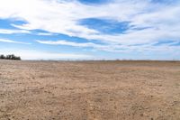 An expansive landscape with a field of grass and small patches of dirt. The open space stretches to the horizon, providing a captivating view of nature. The blue sky and clouds complete the picturesque scene.