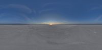 Expansive salt flats greet the dawn, as the sun casts its light over the endless landscape. Clouds scatter above, creating a serene desert tableau. A glimpse of nature's grandeur under the vast skydome.