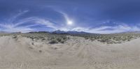 A sweeping view of Alabama Hills in California, USA, showcasing dirt and gravel roads. The rolling desert landscape flanked by impressive mountain ranges stretches under a vast clear sky, inviting off-road adventurers.