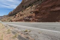 A road winds through the stunning red rock landscape of Utah. The asphalt highway cuts through the mountain landforms, showcasing the unique geology and formations of the region. A perfect road trip destination to explore the mesmerizing canyons and badlands of Canyonlands and Comb Ridge.