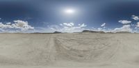 Off-road track at Factory Butte in Utah. The open desert landscape with dirt, gravel, and sand surfaces provides a challenging terrain for off-road enthusiasts. Clouds dot the clear blue sky, enhancing the natural beauty of the area.