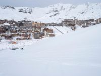 A breathtaking view of the snow-covered alps in France. The picturesque landscape features majestic mountains and a serene valley. The clear blue sky and fluffy clouds add to the charm of this popular tourist attraction.