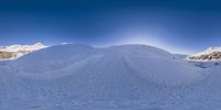 a snow covered mountain with a ski slope in front of it and a blue sky