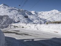 This stunning stock photo features a breathtaking winter landscape in the French Alps. The image showcases a snow-covered road winding through the majestic mountain range. The clear sky overhead adds to the overall beauty of the scene. The mountains and the glacial moraine create a picturesque view that is a popular tourist attraction. The photo captures the essence of winter with the freezing temperatures and glistening snow. The ski tracks and cable car in the distance highlight the popularity of winter sports in this alpine region. This is a perfect image for any project related to tourism, nature, and winter holidays in France and Europe.