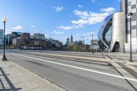 A modern cityscape in Ottawa, Canada. The clear sky highlights the futuristic architecture and high-rise office buildings. The tiled walls and urban design create a unique urban atmosphere.