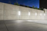 the large concrete wall has been illuminated by recessed lights at night on either side of it