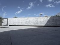 A modern house with futuristic architecture in Tenerife, Spain. The open space design features concrete walls and a roof lined with trees. Clear skies and shadows create a dramatic effect on the sleek surface of the asphalt road.