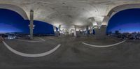 this is an image of a futuristic building in the distance of a circular hole in which the floor and walls are shown