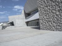 A striking example of modern architecture in Spain. This concrete building showcases bold lines and a futuristic facade. The open space and clear sky provide a stunning backdrop. Located in Tenerife, Europe.