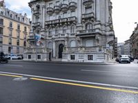 A view of a classic architecture in the city of Geneva, France. The roads are lined with asphalt, creating a urban design. This photo captures the essence of city life in Europe.