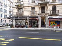A picturesque street in Geneva, France, with classic architecture and vibrant city life. The road is lined with shops and restaurants, showcasing the urban design of this European city. A perfect spot to eat out and experience the lively atmosphere.