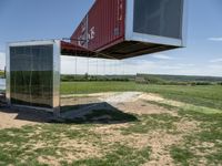 A modern architectural masterpiece in Germany. The sleek facade stands out against the lush green landscape. The clear sky reflects on the glass surfaces, creating a mirror effect. Art sculptures and open spaces add to the serene atmosphere.