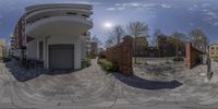360 - view of two buildings with multiple parking spaces in them on the bricked street