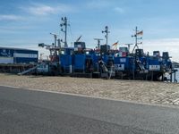 This is a photo of a cityscape in Bremerhafen, Germany. The image shows a clear sky with clouds and a view of the city's industrial area. The cobblestone and asphalt roads can be seen, as well as the urban design and urban life of the city. In the foreground, there is a pier with boats and a jetty for boat landings. The overhead power lines and factories are evidence of the industrial nature of the area. This photo captures the essence of city life and the fluidity of movement in Bremerhafen, a city located in Europe.