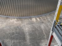 A top-down view of a modern parking garage in Berlin, Germany. The concrete structure features a high ceiling and a grey composite material floor. The urban design blends with the city's modern architecture.