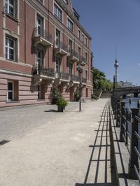 A picturesque view of a residential neighborhood in Berlin, Germany. Classic architecture and cobblestone roads give a glimpse of the city's rich history. Open spaces and clear skies create a serene urban environment.