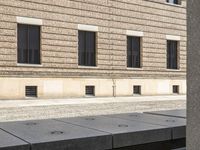 A typical day in Berlin, Germany. Modern architecture meets classic design in the city's business district. Hard shadows contrast with the sandstone facade and cobblestone roads. The man, lost in his phone, adds to the vibrant city life.