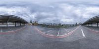 A modern parking lot in Berlin, Germany. The empty lot is surrounded by high-rise buildings and trees. The clear sky above adds a touch of serenity to the urban landscape.