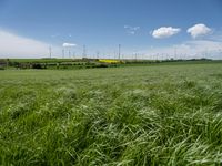 This image showcases the beautiful rural landscape of Germany. The vast open spaces are covered in lush green grass, with fields stretching out towards the horizon. The clear sky and sunlight create a serene atmosphere, perfect for agriculture and wind energy production. In the distance, you can see the iconic windmills and wind turbines, generating electricity from the natural environment. This picture captures the tranquility and natural beauty of the European countryside.
