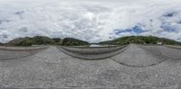 Classic European architecture alongside a concrete road leading straight down a gloomy forested landscape in Germany. A grey sky looms over the urban area, with a glimpse of a rural mountain in the distance.