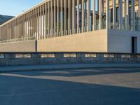 Early morning in Berlin, Germany. Modern architecture casts hard shadows on the asphalt roads in the city. Clear skies and urban design define the European cityscape. A glimpse of city life at dawn.