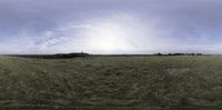 a wide panoramic photo of a grassy meadow, with a castle in the distance