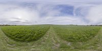 a view of an open field from a low angle fish eye lens with no people in the distance