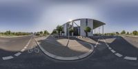 A street view in Berlin, Germany showcasing modern architecture and urban design. The large building in focus features a bicycle on it, adding to the city's vibrant and active lifestyle. The clear sky and sunlight create a pleasant atmosphere.