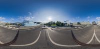 A bustling city street in Berlin, Germany. Modern architecture lines the road, with high-rise buildings and a financial district in the background. Bike riders cross the road, surrounded by urban design and a clear sky. A snapshot of city life in Europe.
