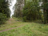 a gravel road leads through a clearing of trees in a forested forest area with lots of vegetation