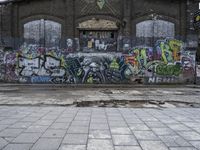 A gloomy day in Berlin, Germany. Classic architecture blends with graffiti-covered facades in this urban art district. Grey skies and wet streets add to the rugged charm of the city. Explore the industrial warehouse courtyards and discover the vibrant street art scene.