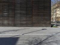 Modern architecture in a urban park in Germany. The composite material flooring contrasts with the surrounding woods. The grey wood walls provide shade and add to the urban design aesthetic of the open space. A picture of contemporary urban Europe.