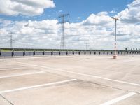 This is an image of a modern parking deck in Berlin, Germany. The architecture of the city is highlighted by the composite material used in the construction of the parking deck. The open space surrounding the deck provides ample parking for residents and visitors. The clear sky and cumulus clouds in the background create a serene atmosphere. The concrete street and asphalt road surface provide easy access to the parking deck. This photo represents the modern urban landscape of Berlin.