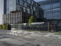 A modern residential building in Berlin, Germany. The sleek facade and innovative design of the building reflect the dynamic nature of the city. The cobblestone road surface and line of trees add to the urban charm.