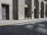 A classic architecture in Berlin, Germany. The building's facade showcases the city's urban design. The road surface lined with trees adds to the charm of this European city. A bustling tourist attraction surrounded by shops and restaurants.