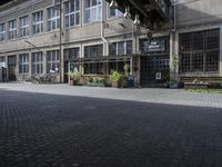 A view of a classic architecture building in Berlin, Germany. The cobblestone road and iron courtyard add to the charm of this residential neighborhood. The bustling city life of Berlin comes alive in this urban art district.