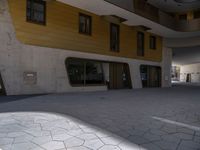 A modern urban cityscape in Germany, showcasing the architecture and design of the residential area. The concrete walls and pavers create a surface with hard shadows, emphasizing the urban atmosphere. A quintessential day in Europe.