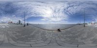 A skateboarder practicing tricks on a rail by the water's edge in Bremen, Germany. The urban design of the city is reflected in the architecture and open spaces. A calm and serene scene with clear skies and a tranquil lake.