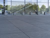 A modern office building in Berlin, Germany. The sleek glass facade reflects the clear sky above, while the surrounding urban design features grey asphalt roads and tall high-rise buildings. The business district is a testament to the city's architectural and economic significance.