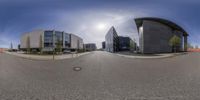 A snapshot of urban life in Berlin, Germany. Modern architecture dominates the cityscape, with concrete and glass facades reflecting the bustling city. Cars drive along the busy road, surrounded by greenery and woody plants.