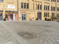 This is an image of an urban landscape in Berlin, Germany. The architecture showcases a mixture of buildings with different facades, windows, and doors. The roads are made of asphalt and cobblestone, while the open spaces are lined with vegetation and trees. The courtyards and warehouses add to the charm of the city. This photo represents a typical day in Berlin, with its unique blend of urban and historic elements. The color palette is dominated by shades of beige. Step into this vibrant European city with this captivating image.
