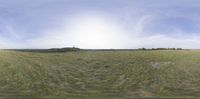 A sunny day in Brandenburg, Germany, with open grassy landscapes and greenery. The sun visible in the clear sky illuminates the vast open spaces. Nature's beauty on full display.