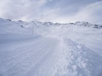 This is a stunning image of a snow-covered mountain landscape in the Alps of France, Europe. The clear sky provides a beautiful backdrop to the towering mountains and the glistening snow. The peaks of the mountain range are covered in a white blanket, making it a perfect destination for winter tourism and skiing. The picture captures the serenity and natural beauty of the area, with the glacial landscape and ice caps adding to its charm. This breathtaking photo is sure to attract tourists from all over the world.