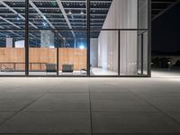 In the heart of Berlin's financial district, a modern glass and wood hotel stands tall. Its symmetrical architecture and glass walls complement the surrounding urban design. At night, artificial light illuminates the open space, creating a cityscape unlike any other.